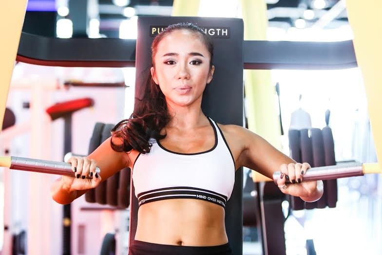 | Bùi Thạch Thảo (hay Lucy Thảo, 25 tuổi) hiện sinh sống tại TP HCM. Là nhân viên văn phòng nhưng 9X vẫn sắp xếp để có 6 buổi tập gym trong tuần. Sau 2 năm, cô sở hữu vóc dáng thon gọn với số đo 3 vòng 82 - 62 - 88.Trong ảnh, Lucy Thảo thực hiện động tác Cable triceps push down bằng cách hít sâu và tập trung gồng lực vào cơ tam đầu bắp tay sau, cố định và ép cánh tay vào sát người, để thanh tạ di chuyển đến vị trí cánh tay vuông góc với cẳng tay, chân trụ vững trên sàn, tập trung sức vào cơ tay sau đẩy mạnh thanh đòn về vị trí bắt đầu rồi thở ra. |