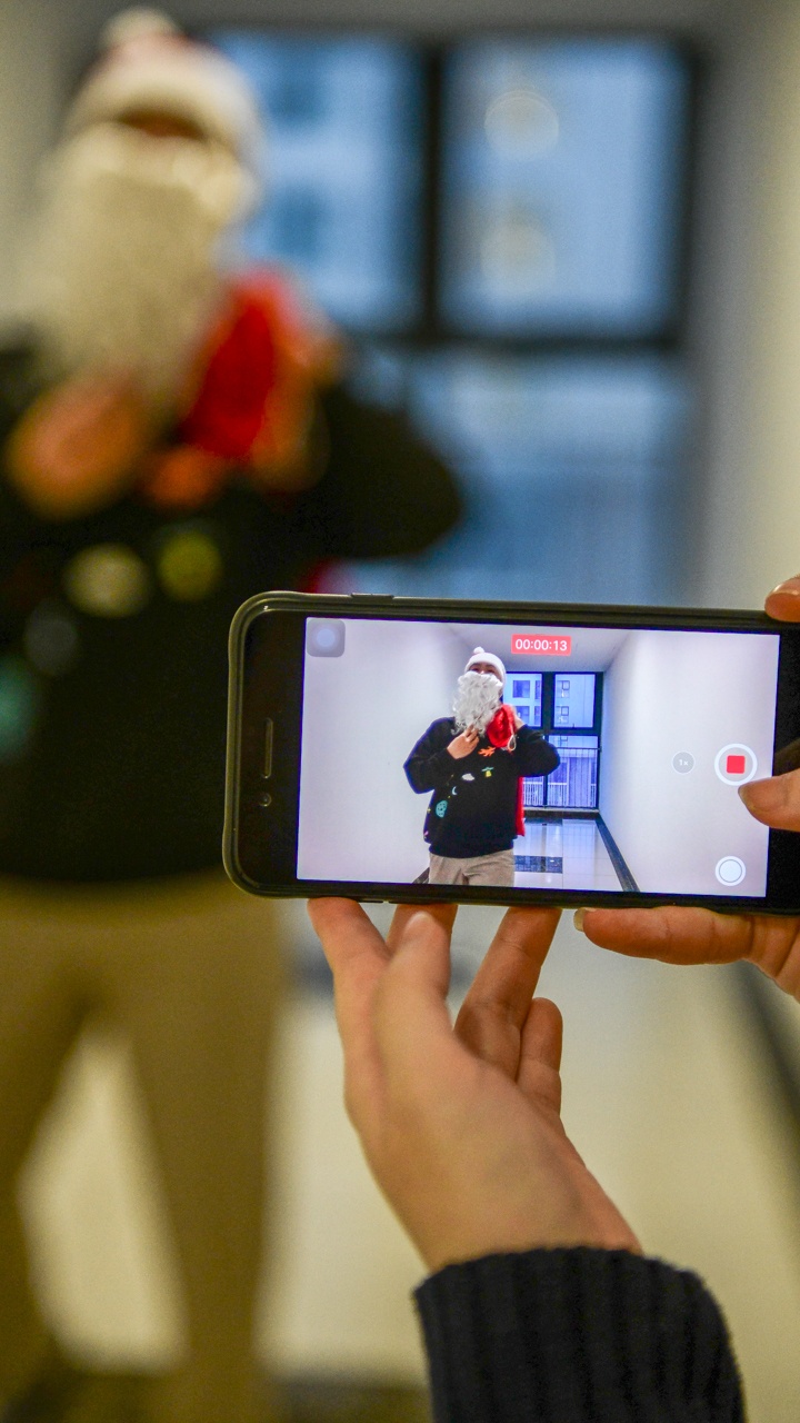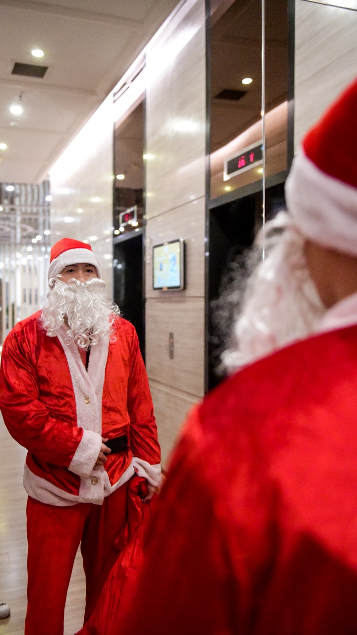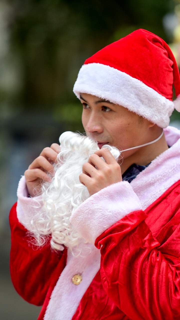 | Chưa hóa trang thành ông già Noel trước đó bao giờ, tôi không tránh khỏi cảm giác lo lắng. Trước ngày bắt đầu phát quà, tôi lên mạng xem các video về Santa Claus để bắt chước sao cho giống, từ dáng đi, động tác vuốt râu cho đến cách trao quà cho các em nhỏ. Cẩn thận hơn, tôi quay clip, gửi cho anh phụ trách để nghe góp ý. |