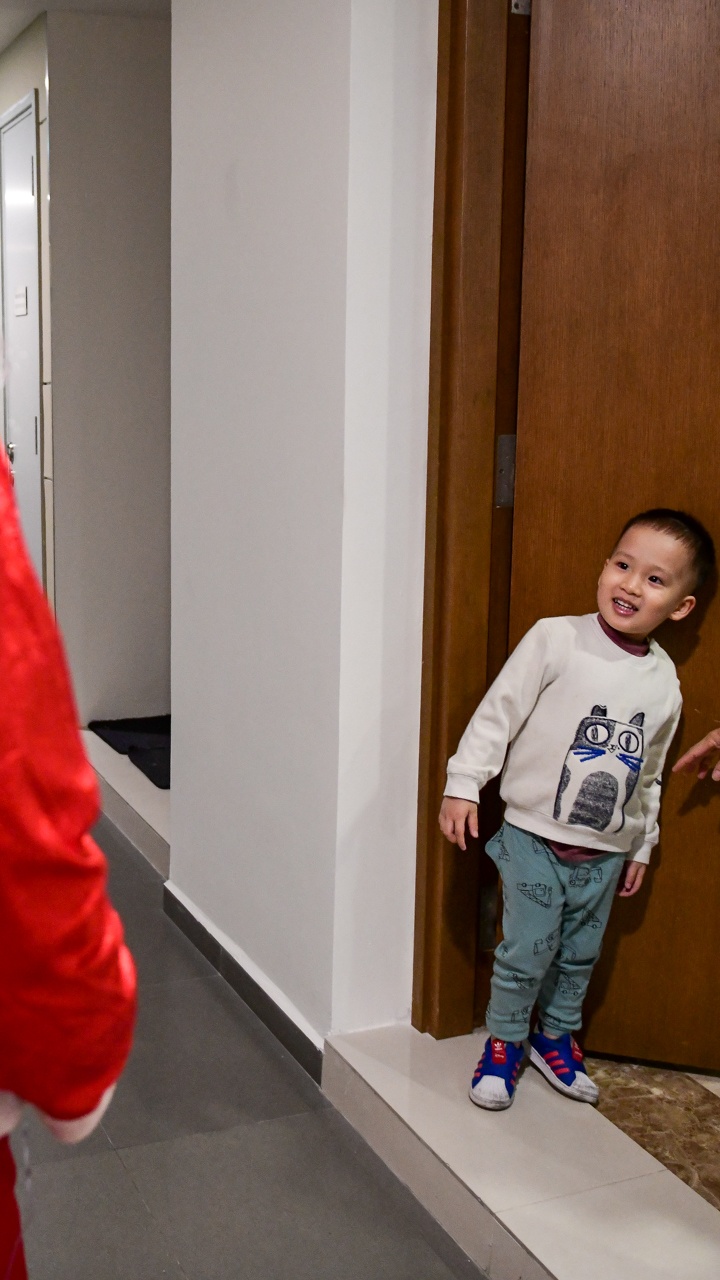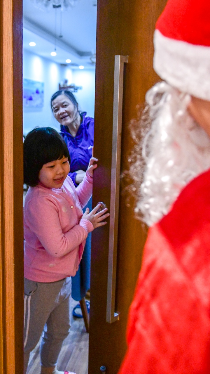 | May mắn, tôi cuối cùng cũng tìm được đúng nhà. Bé trai đứng ở cửa đón ông già Noel, nhìn tôi với ánh mắt bất ngờ. |