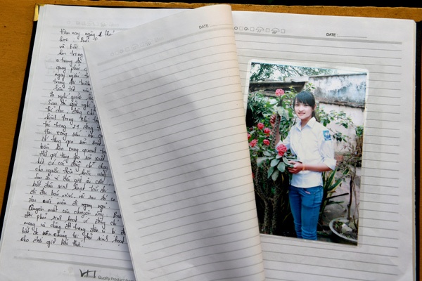 Cuốn nhật ký và bức ảnh cô bạn gái trong bộ đồng phục THPT của một chiến sĩ. |