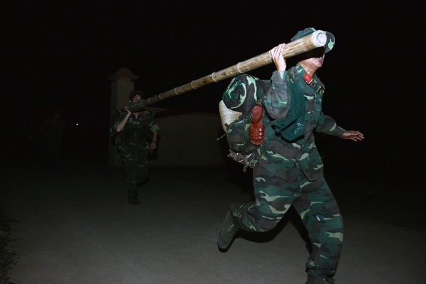 Một tuần một lần, các chàng trai lại tập hành quân hàng chục km trong đêm với 20kg trong ba lô cùng súng đạn. |