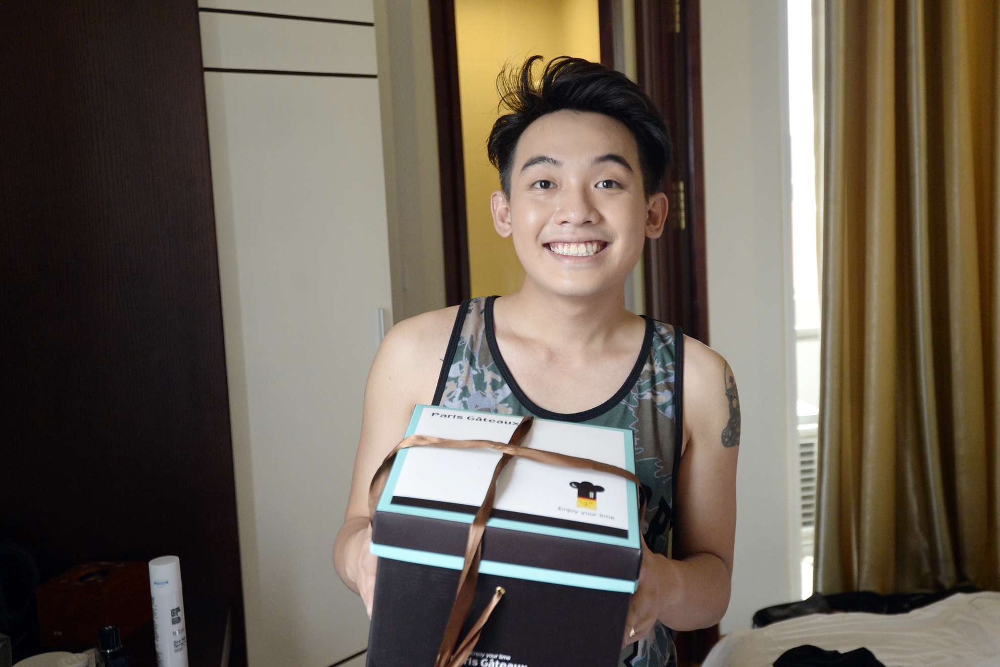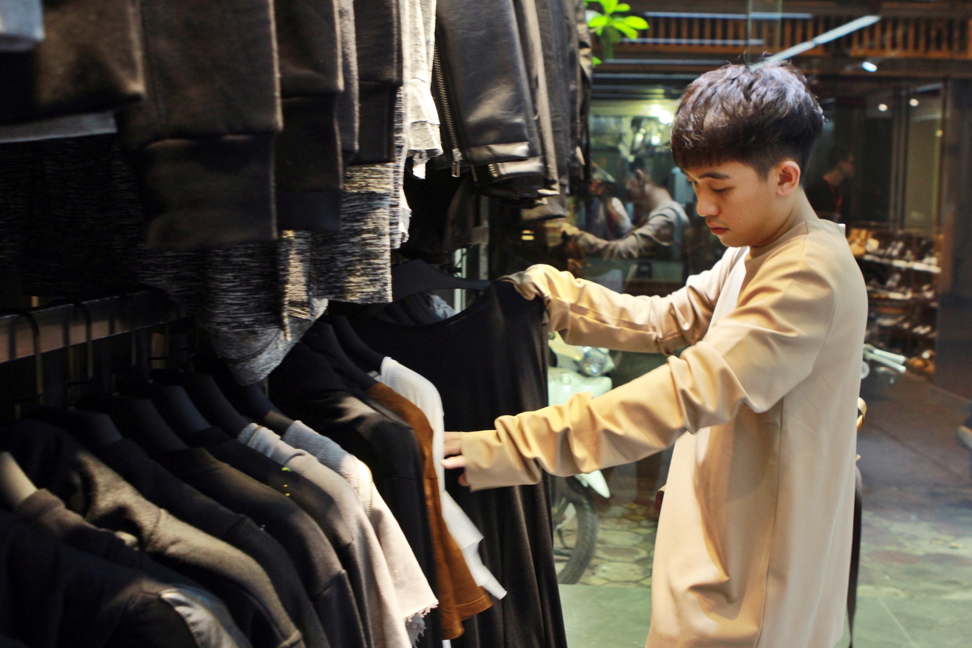 Phở Đặc Biệt mất 30 phút dọn dẹp đồ đạc. Trong chuyến đi này, anh mang theo nhiều quần áo để phục vụ cho những cảnh quay trong 5S Online. 9X cho biết, anh luôn hướng đến phong cách tối giản nhưng vẫn cá tính, nổi bật.
