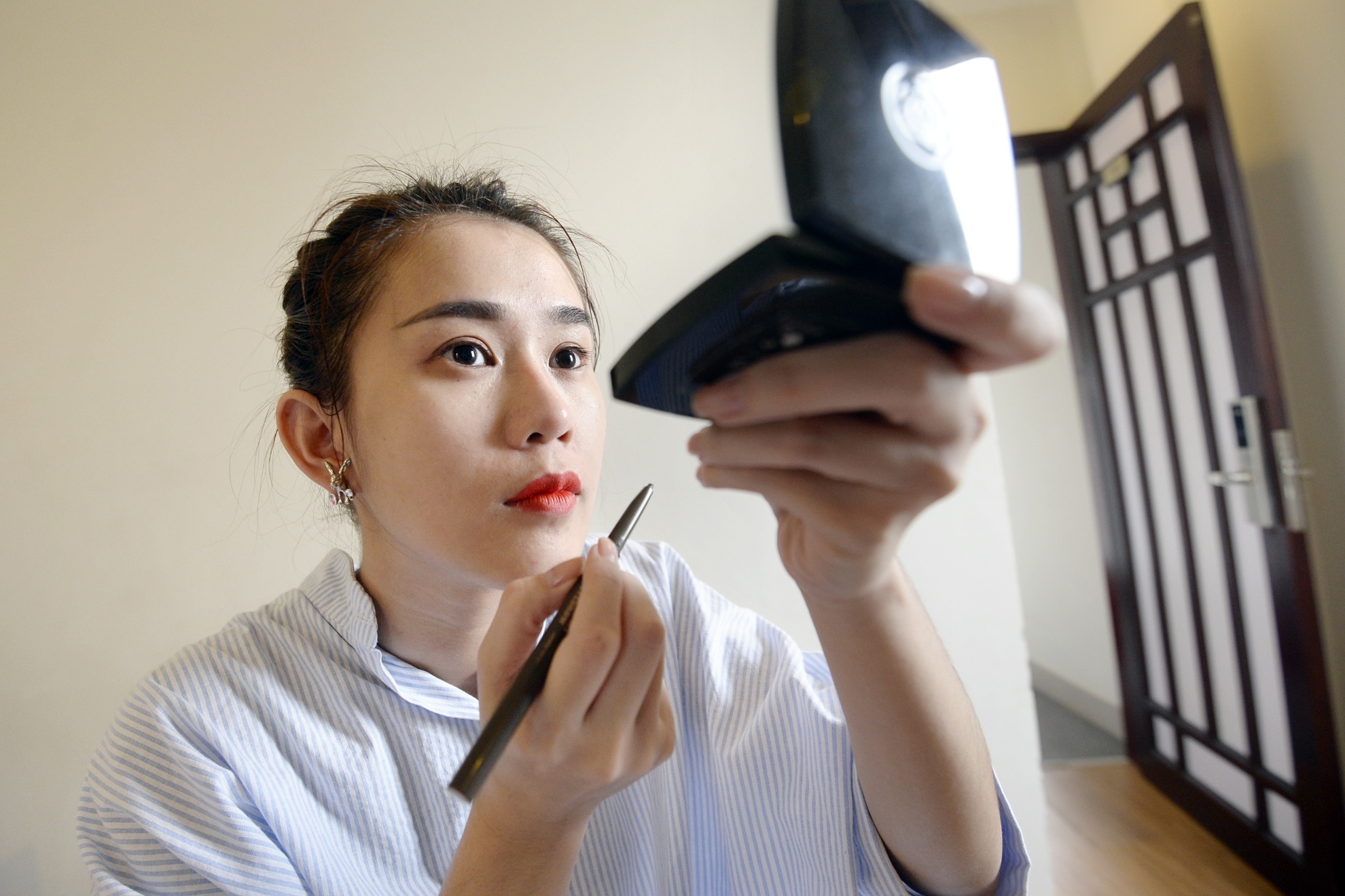 Ngọc Thảo trang điểm nhẹ trước lúc xuống phố. Nổi lên nhờ vai trò người mẫu ảnh, song hiện cô dần khẳng định mình ở lĩnh vực diễn xuất khi để lại dấu ấn bằng vai diễn trong các bộ phim như Tiệm bánh hoàng tử bé, Căn hộ 69, Mùa oải hương năm ấy... Hot girl còn từng có dịp đóng chung quảng cáo với nam diễn viên Kim Woo Bin.