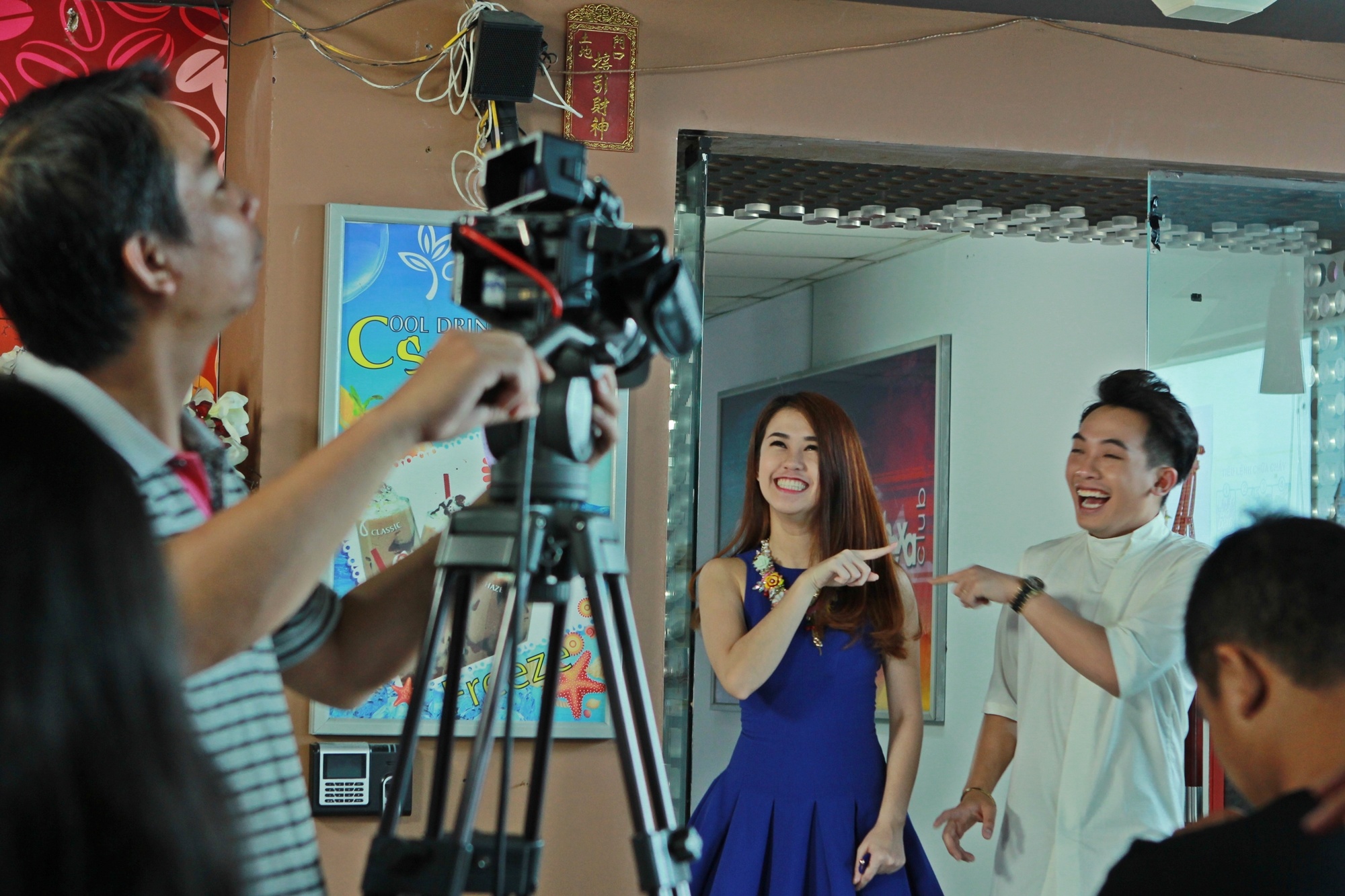 Mới đây, Phở Đặc Biệt - Ngọc Thảo có mặt ở Hà Nội 4 ngày, tham gia đóng vai khách mời trong phim sitcom 5S Online. Cặp đôi nhóm Thích Ăn Phở đến trường quay từ 8h sáng để trang điểm và học lời thoại.