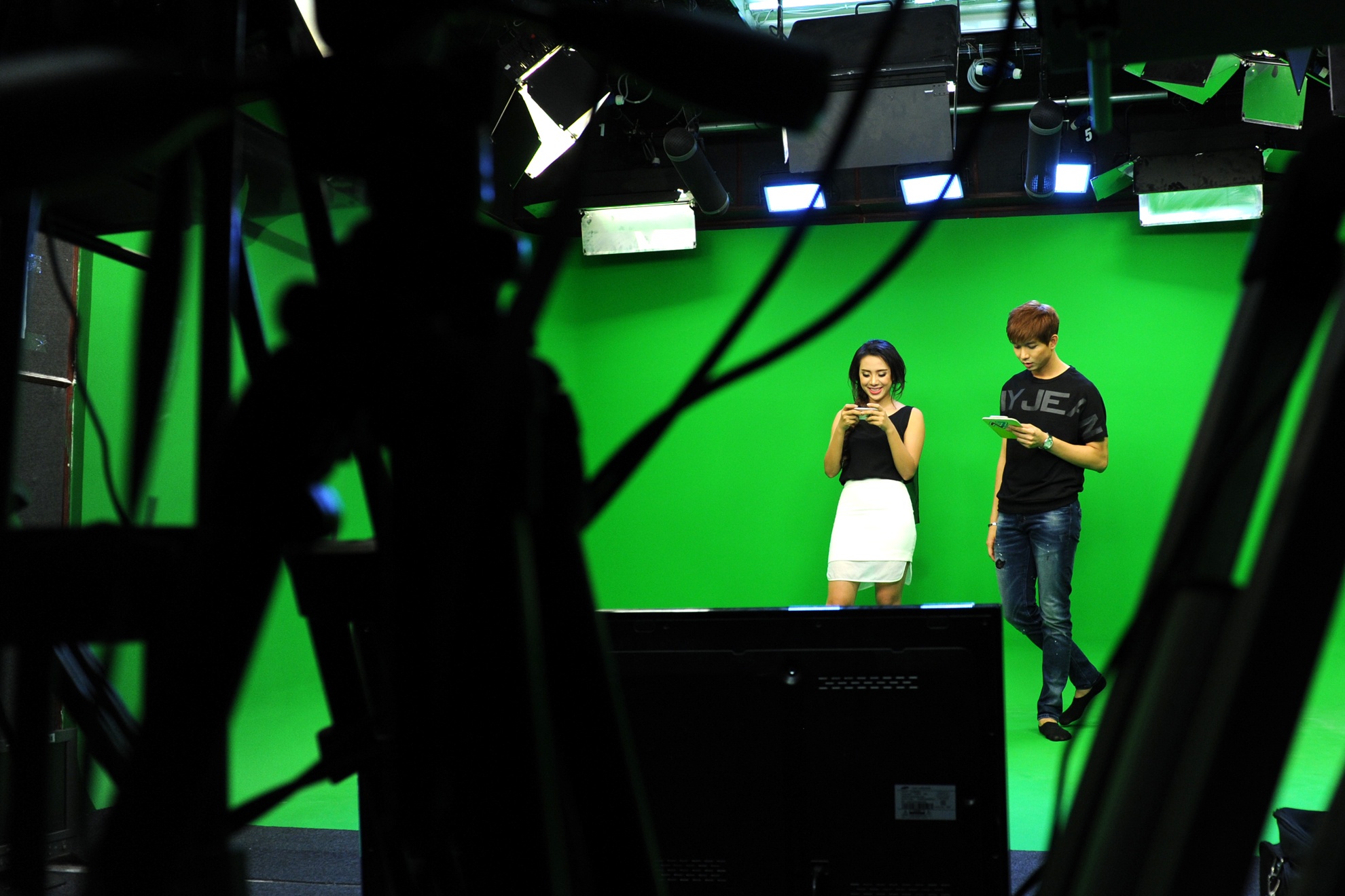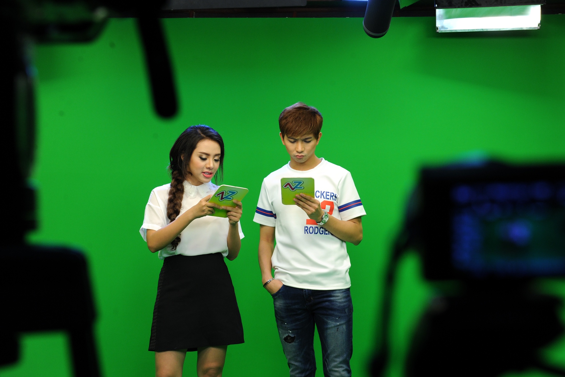 "Cặp đôi" của chương trình xì-tin trong trường quay trước giờ ghi hình. Thời gian qua, hôn nhân của Tim và bà xã Trương Quỳnh Anh gặp sóng gió khi giọng ca Thế nhé anh giận chồng, bế con trai Sushi rời nhà. Sau giây phút nóng giận, cả hai đã bình tĩnh và cùng nhau vượt qua thời gian khó khăn để hàn gắn cuộc sống vợ chồng.