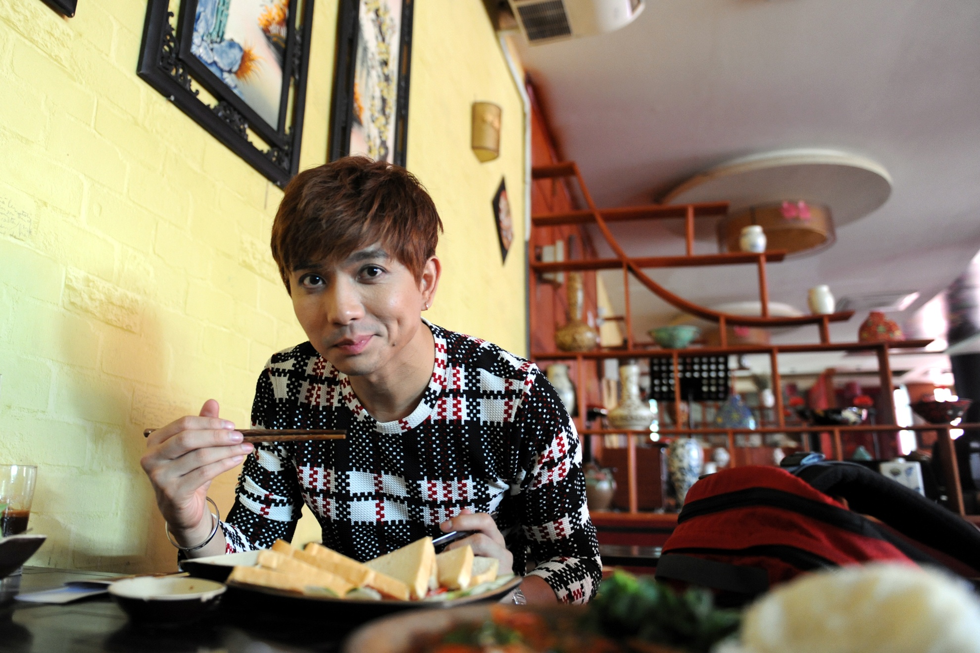 | 14h15, Tim tranh thủ ăn trưa. Sở hữu chiều cao hơn 1,8 m, "ông bố một con" rất chú trọng việc giữ dáng. Khẩu phần ăn của anh chỉ gồm một quả trứng ốp, hai miếng bánh mỳ và vài lát dưa chuột. |