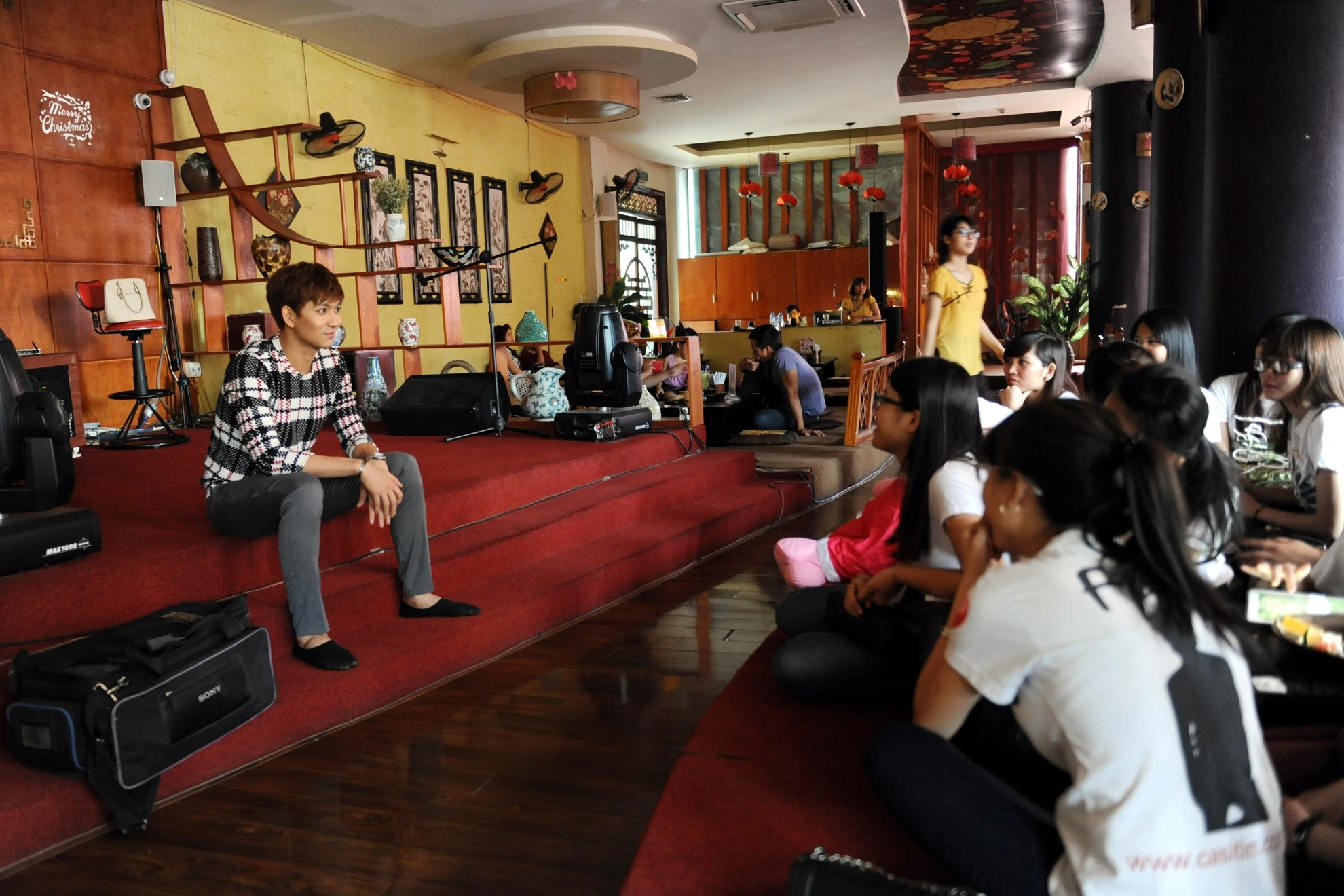 | Sau khi cùng các fan chụp hình kỷ niệm, 14h, Tim có mặt tại một phòng trà. 15h, nam ca sĩ có buổi giao lưu với người hâm mộ tại đây. Giọng ca Lặng lẽ yêu em sắp xếp lại đồ đạc trong ba lô để chuẩn bị chạy show tới tối. |