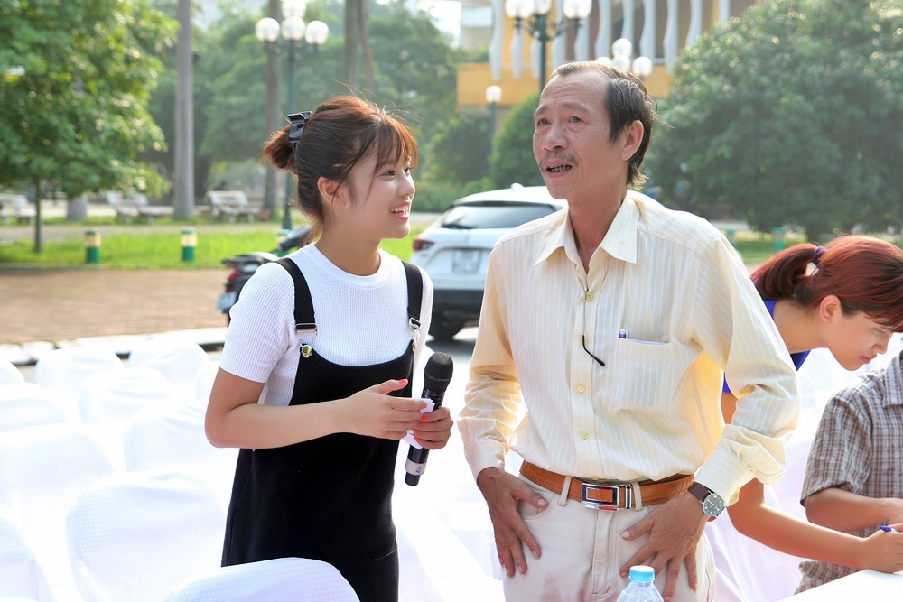 Hoàng Yến vô tình gặp lại nhạc sĩ Hà Hải ở phía dưới sân khấu. Hot girl hỏi thăm sức khỏe và đứng trò chuyện cùng nhạc sĩ. Yêu thích ca hát từ bé, cô gái sinh năm 1995 từng tham gia nhiều hoạt động văn nghệ, các cuộc thi âm nhạc khi còn sinh hoạt ở Nhà văn hóa Thiếu nhi quận Ba Đình.