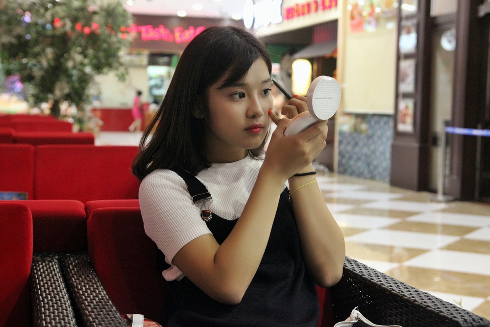 | Đi diễn liên tục nên Hoàng Yến Chibi học được cách tự trang điểm cho mình để tiết kiệm thời gian, chi phí. Vì cả hai show diễn buổi tối đều là chương trình dành cho giới trẻ nên cô chọn phong cách make-up nhẹ nhàng, nữ tính. |