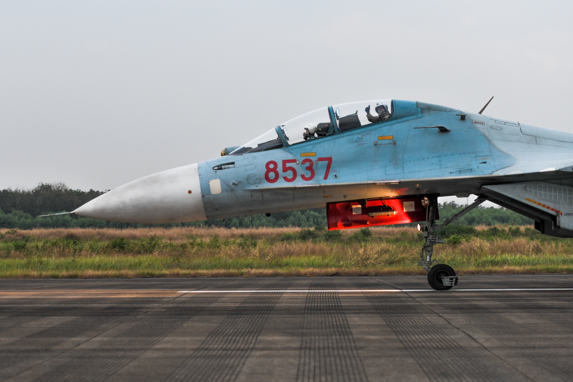 Mặt trời lặn, chiếc Su-30MK2 bắt đầu rời ga đỗ để cất cánh. Su-30MK2 là loại máy bay chiến đấu có hai động cơ, được Việt Nam tiếp nhận năm 2004 và 2012. Mỗi đoàn bay gồm 2 phi công. Tuy nhiên, trong các đợt bay huấn luyên chuyên sâu, một phi công người Việt sẽ bay cùng một phi công người Nga. Tuỳ thuộc vào phương án huấn luyện, mỗi lượt bay có thể kéo dài trong quãng thời gian khác nhau.