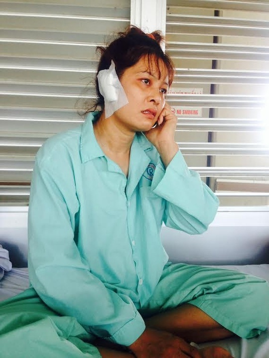 Tại Bệnh viện Đa khoa Thủ Đức, các bác sĩ đã sơ cứu và ướp đá tai cho chị Xuân rồi chuyển chị đến Bệnh viện Chợ Rẫy.