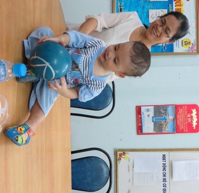 | Bo rất ngoan và hiếu động, đang chơi với cán bộ phường. |