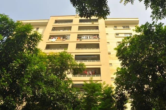 | Khu nhà tập thể nơi nạn nhân rơi từ trên xuống. |