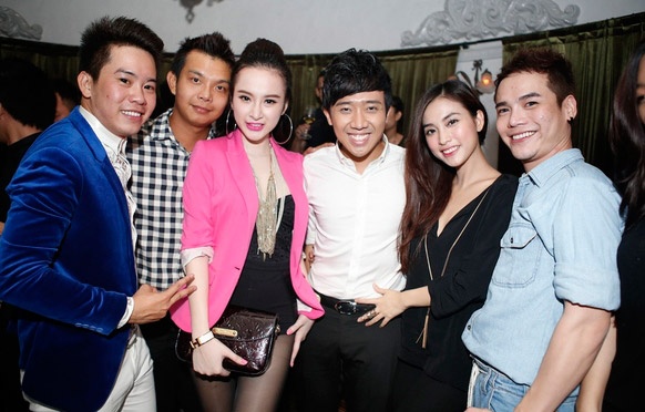 | Angela Phương Trinh với trang phụ trên hở dưới ngắn khi đi bar. |