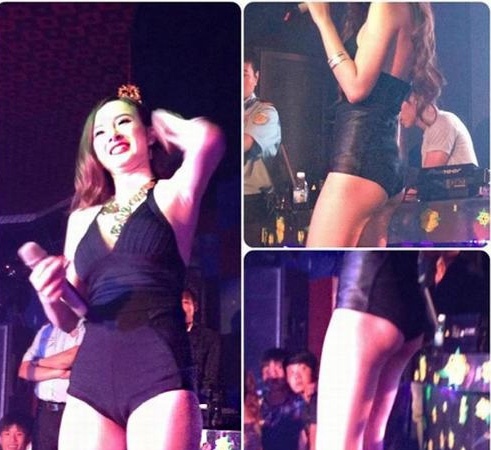 | Trang phục liền bó sát và siêu ngắn đã khiến Angela Phương Trinh bị cấm biểu diễn nghệ thuật. |