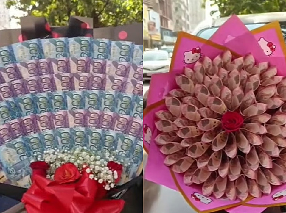 Bó hoa được làm từ tiền giấy. Ảnh: Kenya KTN YouTube. |