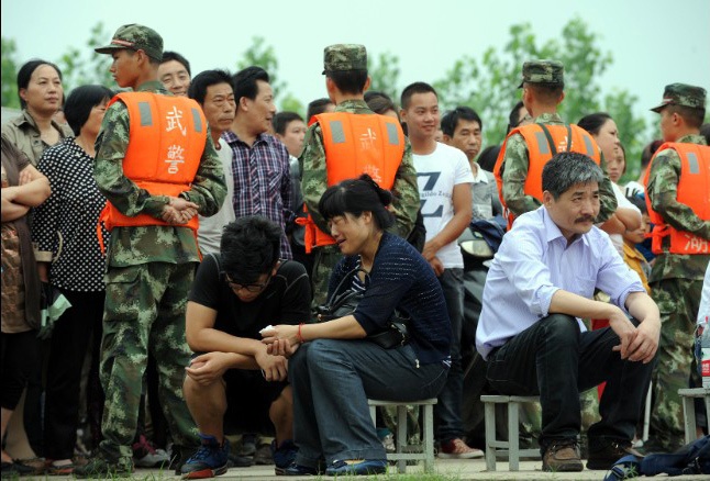 Thân nhân hành khách tập trung ở Nam Kinh để ngóng tin người thân. Theo lộ trình, Ngôi sao phương Đông sẽ đưa hành khách tham quan đập Tam Hiệp và ngắm nhìn các thắng cảnh ven dòng Dương Tử. Ảnh: Getty |