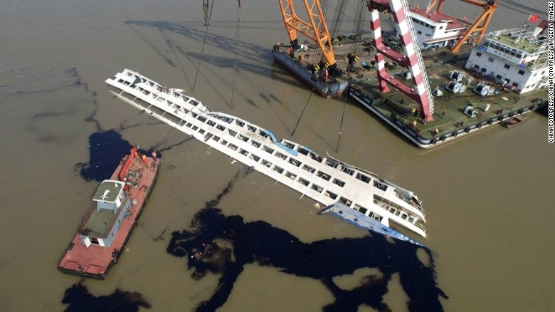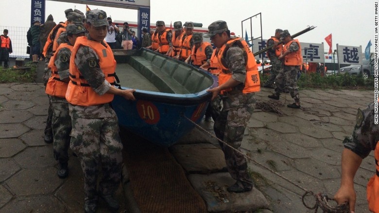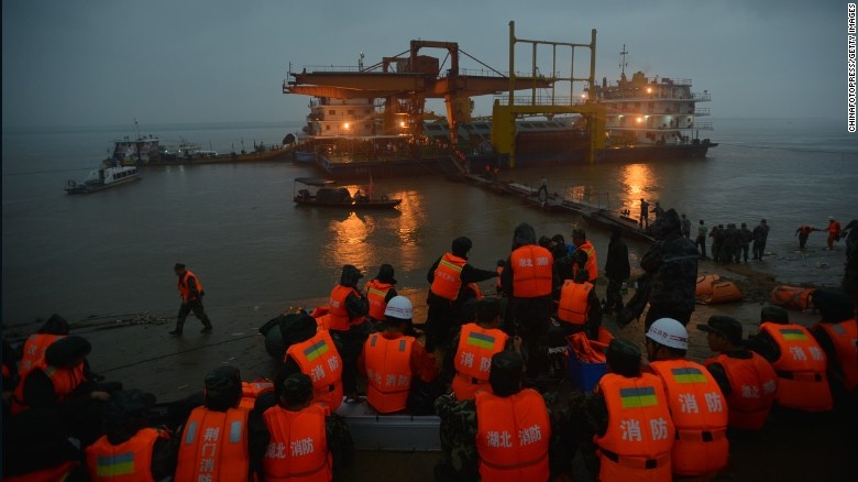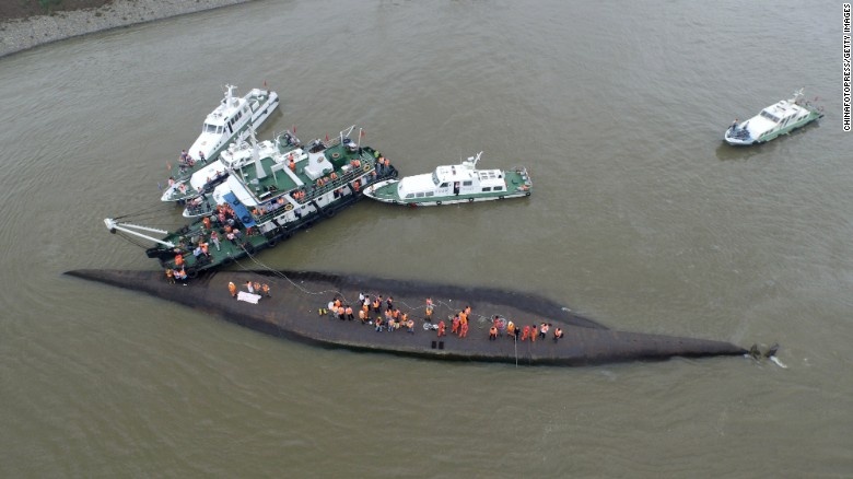 Sáng 2/6, lực lượng cứu hộ tiếp cận hiện trường tai nạn. Xác tàu nằm ở vùng nước sâu 15 m, cách bờ khoảng 3 km. Chủ tịch Trung Quốc Tập Cận Bình yêu cầu dồn toàn lực để tìm kiếm các nạn nhân. Tuy nhiên, nỗ lực cứu trợ bị cản trở bởi thời tiết xấu. Ảnh: Getty |