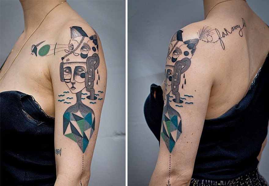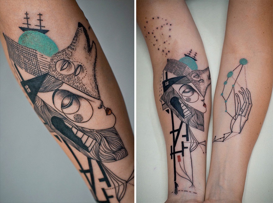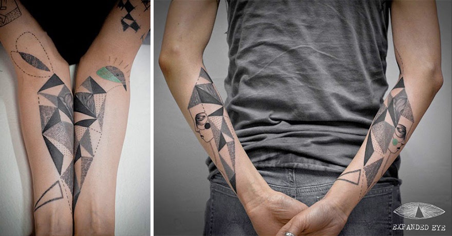 | Theo Boredpanda, thời hoàn kim của mốt xăm Cubism (trường phái lập thể - tạo ra cuộc cách mạng về hội họa và điêu khắc châu Âu vào đầu thế kỷ 20) đã qua, nhưng nó đang quay trở lại và gây sốt trong giới xăm hình nhờ những cách điệu và biến tấu thú vị của cặp đôi thợ xăm nghệ thuật Jade Tomlinson và Kev James. |