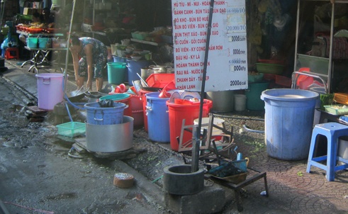 Ghi nhận tại một quán cơm bình dân trên đường Ngô Tất Tố (Q.Bình Thạnh), hầu hết chén dĩa sau khi được tráng qua loa trong một xô nước là tiếp tục dùng đựng thức ăn cho khách hàng khác. Vì chén dĩa nhựa, nên việc tráng qua loa như vậy không thể sạch, nhiều khi vẫn còn dính đồ ăn thừa, nước rửa bát,… Đáng nói là chỉ một xô nước nhưng được dùng để rửa hàng trăm chén dĩa trong một buổi.