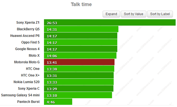 Sau đây là bài đánh giá thời lượng pin của Moto G, được thực hiện bởi trang công nghệ GsmArena.