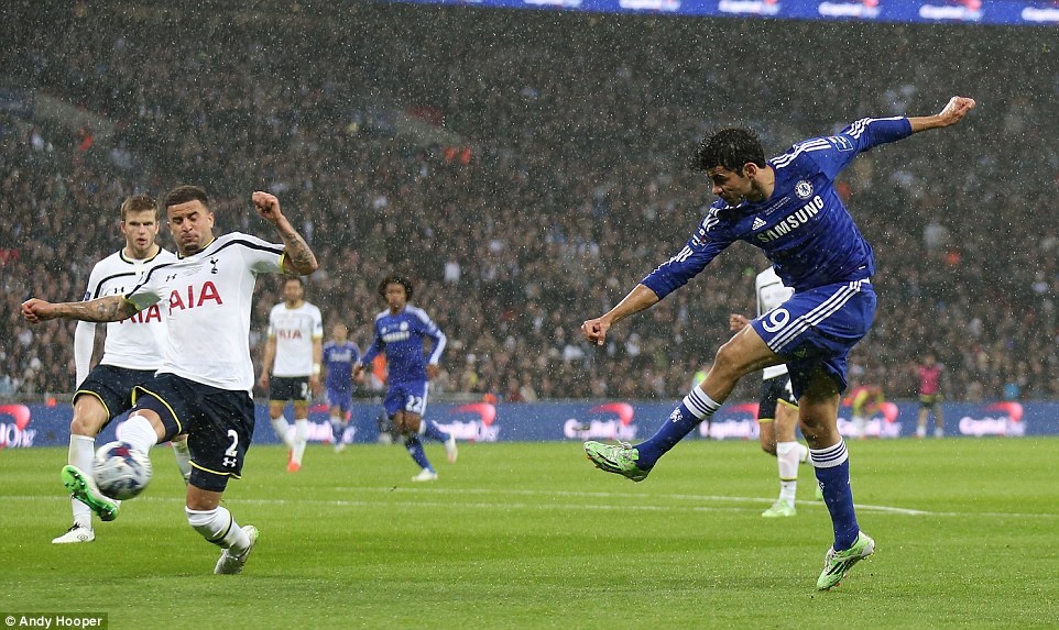 | Cú sút trái phá của Diego Costa đưa bóng đập chân Kyle Walker trước khi bay vào lưới ở phút 56, ấn định chiến thắng 2-0 cho Chelsea. |