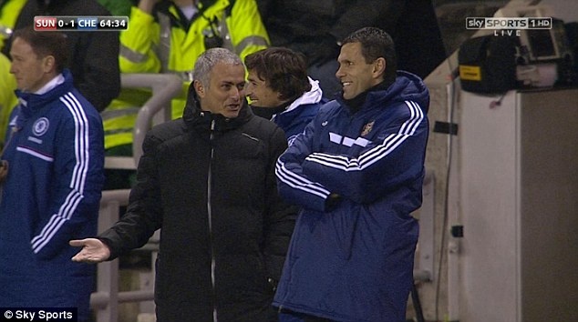 | Người đặc biệt cười nói rộn ràng với người đồng nhiệm bên kia chiến tuyến Gus Poyet sau khi Chelsea có được bàn dẫn trước. |
