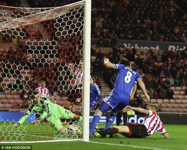 | Mọi tính toán của Mourinho có vẻ đúng hướng khi Lee Cattermole đá phản lưới nhà giúp Chelsea vượt lên ở phút 47. |