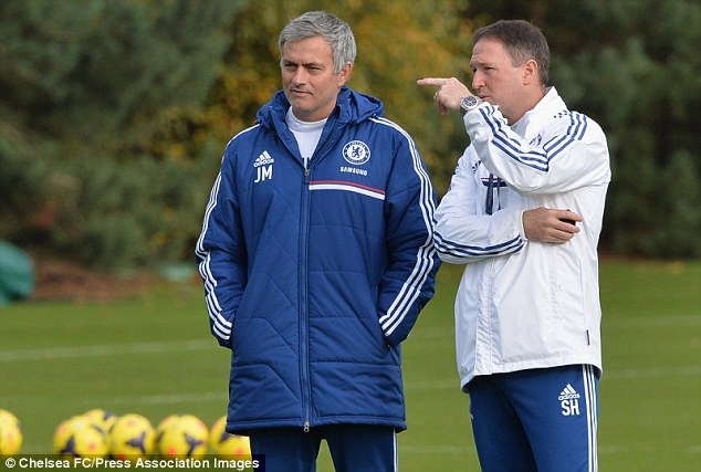| Mourinho và người trợ lý của mình giám sát chặt chẽ các cầu thủ tập luyện. |