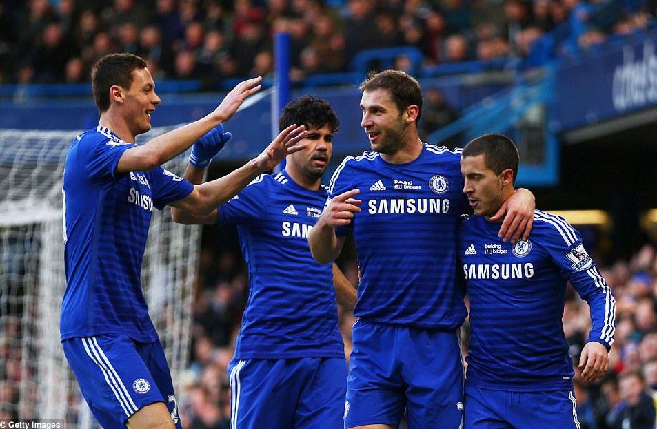 | Bốn cầu thủ Chelsea gồm Matic, Costa, Ivanovic và Hazard (từ trái qua phải) đánh rơi phong độ từ đầu mùa. Ảnh: Getty Images. |