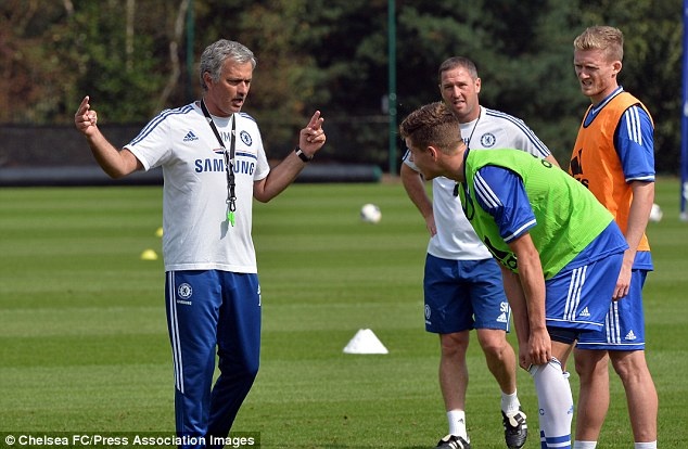 | HLV Mourinho cùng các học trò chuẩn bị cho trận gặp MU. |