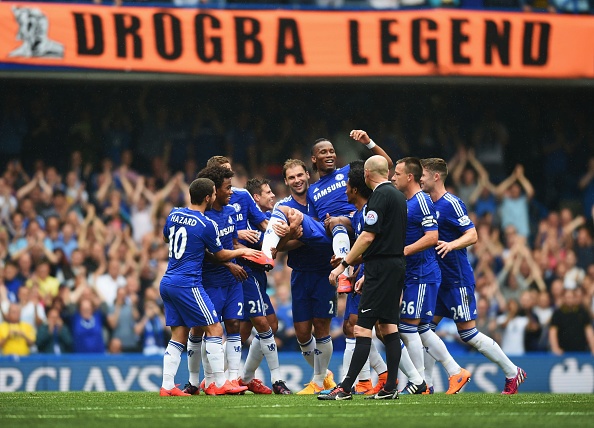 | Drogba được các đồng đội công kênh rời sân để nhường chỗ cho Diego Costa ngay khi trận đấu đang diễn ra. |