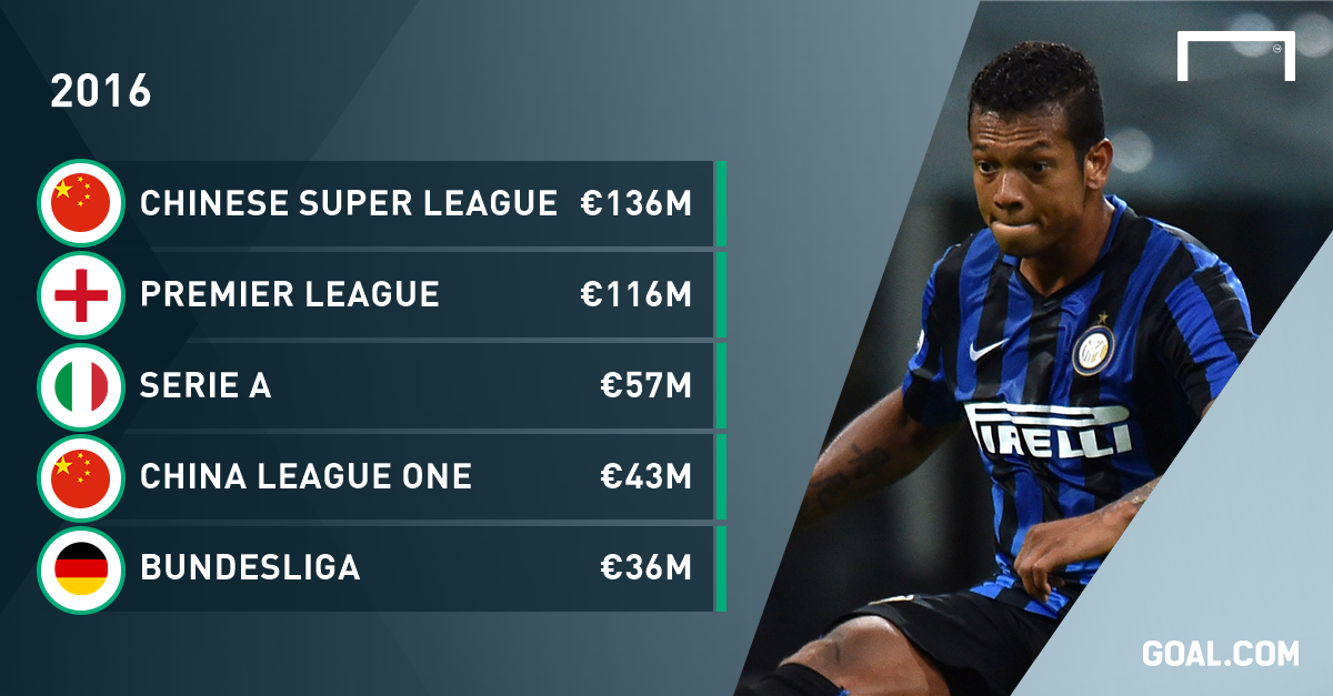 Thậm chí ngay cả những đội bóng đang thi đấu tại giải hạng 2 Trung Quốc (League One) đã chi đến 43,7 triệu euro vào TTCN, nhiều hơn Bundesliga (36 triệu euro) và chỉ xếp sau Premier League và Serie A. Bên cạnh đó, La Liga, giải đấu có sự góp mặt của hai CLB hàng đầu thế giới là Barcelona và Real Madrid cũng chỉ đứng thứ 7 trên BXH này.