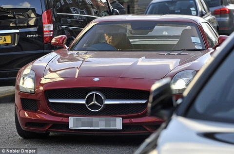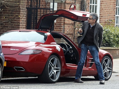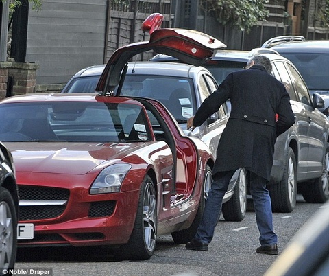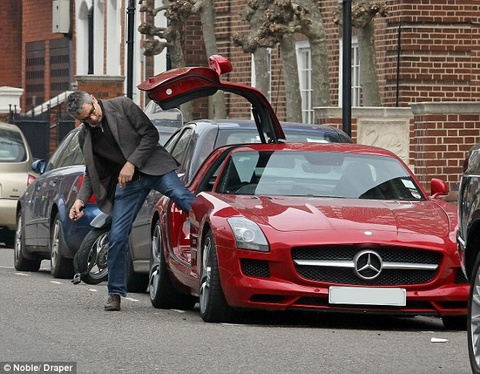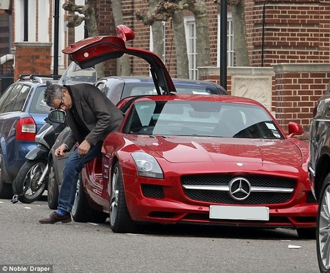 | Danh hài thế giới Rowan Atkinso (vai Mr Bean trong bộ phim nổi tiếng cùng tên) bên cạnh chiếc siêu xe mới, thuộc dòng Mercedes SLS AMG. |