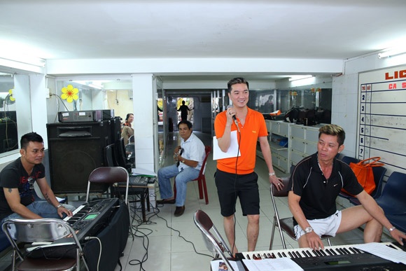 Mr Đàm bảnh bao giầy, túi đồng bộ đi tập nhạc