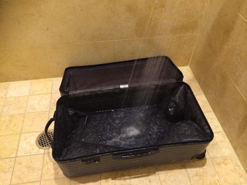 | Mr Đàm ví việc tắm rửa cho vali giống như tắm cho heo ở quê nhà vậy. |