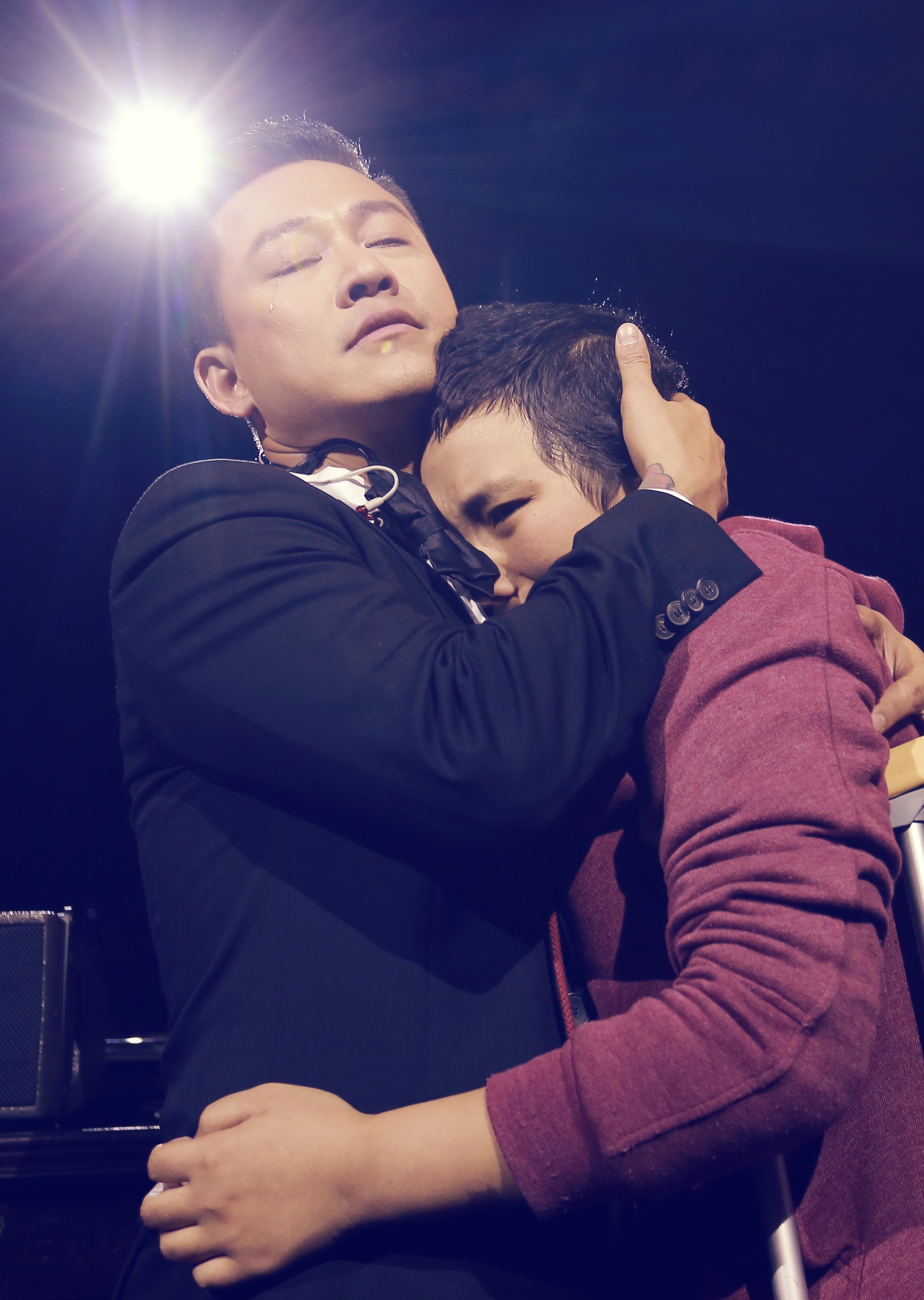 Một hình ảnh cảm động trong live show đam mê chính là những giọt nước mắt của Tuấn Hưng ôm bé Hoài, một bệnh nhân mắc ung thư đang điều trị tại bệnh viện K Tân Triều. |