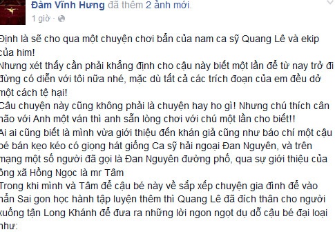 | Những chia sẻ của Đàm Vĩnh Hưng trên trang cá nhân. |