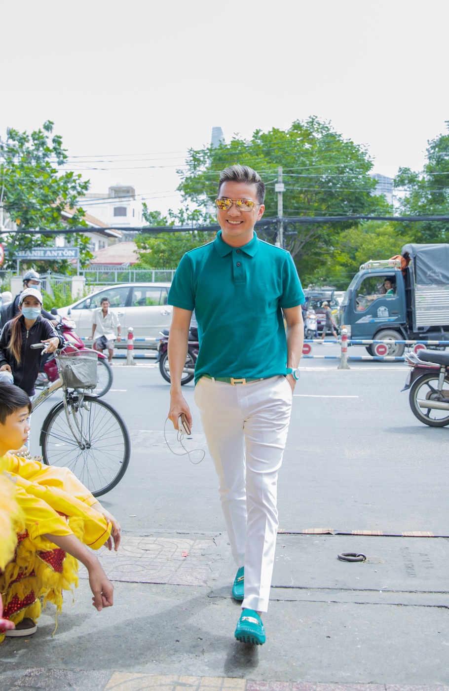 | Mặc dù vừa đáp chuyến bay về đến Sài Gòn sau chuyến lưu diễn, nhưng Mr. Đàm đã nhanh chóng có mặt ở quán cơm tấm Bụi để dự buổi khai trương. "Ông hoàng nhạc Việt" diện trang phục hàng hiệu đơn giản nhưng ton sur ton sành điệu, thu hút sự chú ý của người đi đường. |