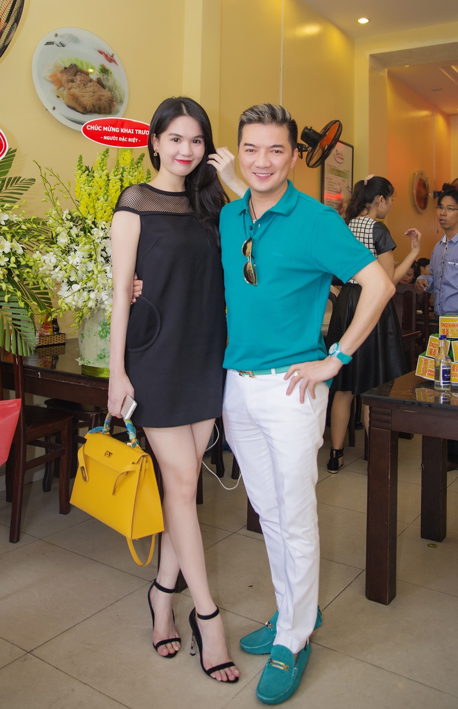 Trưa 12/9, "ông hoàng nhạc Việt" và "nữ hoàng nội y" đã cùng có mặt ở buổi khai trương quán cơm tấm Bụi tại 43 Nguyễn Thái Học, quận 1, TP.HCM.