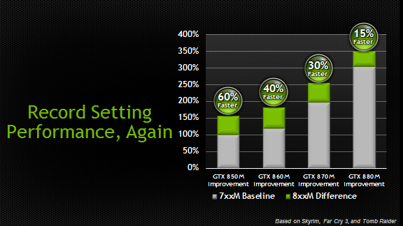 Tại sự kiện, MSI cũng dành thời gian để giới thiệu đến những người yêu game dòng card đồ họa rời mới mới NVIDIA GeForce GTX880M/GTX870M. Đại diện hãng cho biết phần cứng mới sẽ mang lại hiệu năng chơi game đạt “ tốc độ ánh sáng” và với độ phân giải cao, tăng hơn 15% hiệu năng trên các bài kiểm tra đồ họa tiêu chuẩn 3D Mark 11 so với các máy tính chơi game thế hệ trước dùng các dòng card như GTX780M và GTX770M.