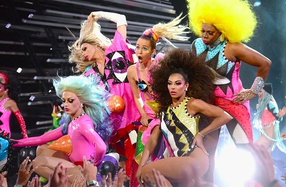 Dù thế nào đi chăng nữa, MTV VMA 2015 thực sự là một “sân chơi” của Miley Cyrus. Đối với màn trình diễn bất ngờ của bản thân, cô mời lên sân khấu 31 “drag queen” (đàn ông giả gái) như một lời tuyên ngôn về quyền bình đẳng cho mọi giới tính. Từ trước tới nay, cô là người thường xuyên tham gia các tổ chức hỗ trợ cộng đồng LGBT. Chuyện đem ngần ấy “drag queen” lên sân khấu của sự kiện âm nhạc nổi bật trong năm giúp cô tiếp tục ghi điểm với cộng đồng người đồng tính.