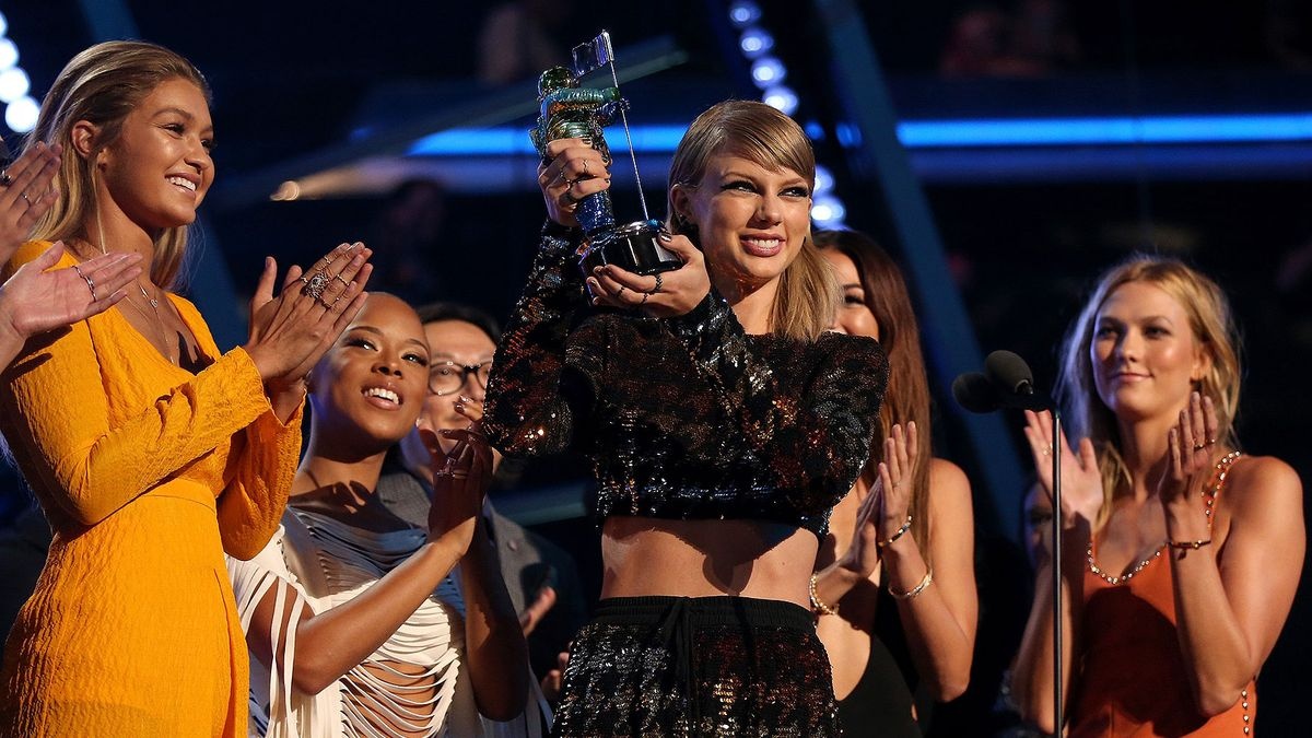 | Taylor Swift trên sân khấu nhận giải Video xuất sắc của năm nhờ Bad Blood. |