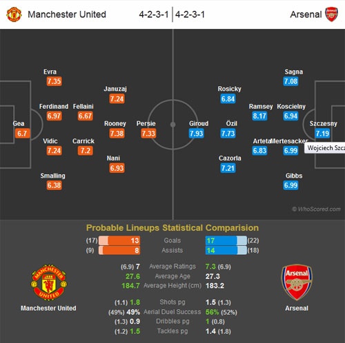 Để đánh bại Pháo thủ ở thời điểm hiện tại, MU cần phải "giam lỏng" tiền vệ sáng tạo Mesut Oezil của CLB chủ sân Emirates. Sự xuất hiện của cầu thủ người Đức mới chính là nhân tố quan trọng làm thay đổi lối chơi của Arsenal. Hoạt động của Oezil ở khu trung tuyến đang giúp khả năng tấn công của đội bóng thành London trở nên nguy hiểm hơn nhiều lần.