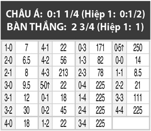 2 bàn trở xuống: 4/6 trận gần nhất của Aston Villa có từ 2 bàn trở xuống. Trên sân khách, 7/12 trận gần đây của họ cũng không có quá 2 pha lập công. Man United vắng Van Persie, người đã ghi tới 5 bàn và có 2 pha kiến tạo trong 5 lần gần nhất gặp Aston Villa.