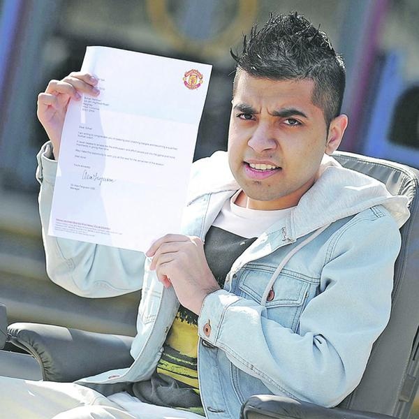 | Sohail Rehman khoe bản hợp đồng ký với M.U. Ảnh: Twitter. |