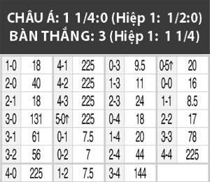 Tối thiểu 1 bàn hiệp 1: 16/20 trận gần nhất của M.U có tối thiểu 1 lần lưới rung hiệp 1. Tương tự là 10/11 trận sân nhà gần nhất của Quỷ đỏ. NHM nên đợi sau 15 phút đầu rồi mới đặt niềm tin vào tỷ lệ nhiều bàn hiệp 1.