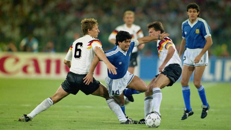 | Tây Đức 1-0 Argentina (8/7/1990): Trận chung kết World Cup 1990 nhạt nhẽo dù có hai tấm thẻ đỏ được rút ra. Argentina của Diego Maradona ra sân để phòng ngự. Họ lập kỷ lục khi chỉ tung ra 1 cú sút trúng đích cả trận. Trong khi Tây Đức cũng gây thất vọng. Thế bế tắc chỉ được phá vỡ khi Andreas Brehme ghi bàn duy nhất trên chấm 11 m, giúp Tây Đức lần thứ ba lên đỉnh thế giới. |
