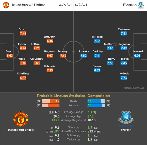 Phần lớn những cầu thủ trụ cột trong đội hình hiện tại của Everton đều được HLV David Moyes đưa về Goodison Park. Điều đó đồng nghĩa với việc vị thuyền trưởng của MU nắm khá rõ điểm mạnh và yếu của CLB vùng Merseyside. Tuy nhiên, chiến lược gia người Scotland vẫn cần phải có sự cẩn trọng, bởi Everton dưới triều đại Martinez đang thi đấu rất hay. Bằng chứng là đối thủ còn đứng trên MU tới 3 bậc trên bảng xếp hạng.