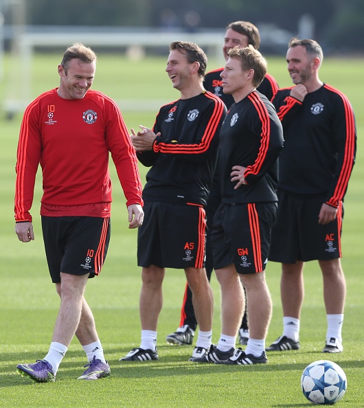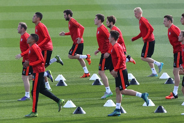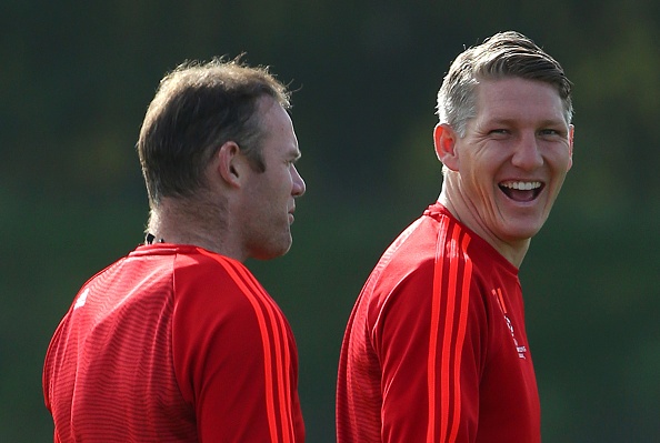 | Trong buổi tập chuẩn bị cho trận gặp đội bóng Đức, Wayne Rooney nói chuyện thoải mái với tiền vệ lão tướng Schweinsteiger. Huấn luyện viên Van Gaal tiết lộ hai cầu thủ này sẽ ra sân ở trận gặp Wolfsburg. |